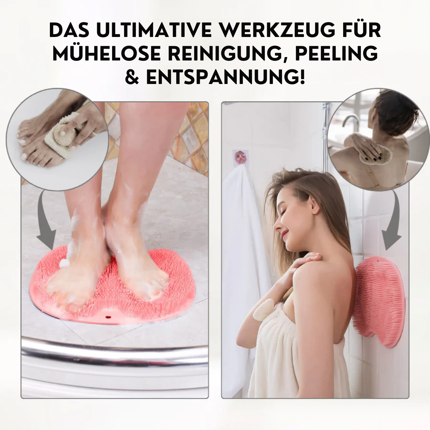 Verwandeln Sie Ihr Duscherlebnis mit dem Dusch-Fuß- und Rückenmassagekissen. Genießen Sie mühelose Fußreinigung, wohltuende Massagen und stressfreie Entspannung – ganz ohne Bücken oder Balancieren!